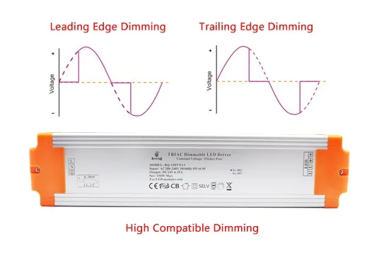Trailing edge dimmers work well with electronic loads, especially LED drivers. Many LED drivers contain internal capacitors. These components interact better with a clean voltage rise rather than an abrupt start.