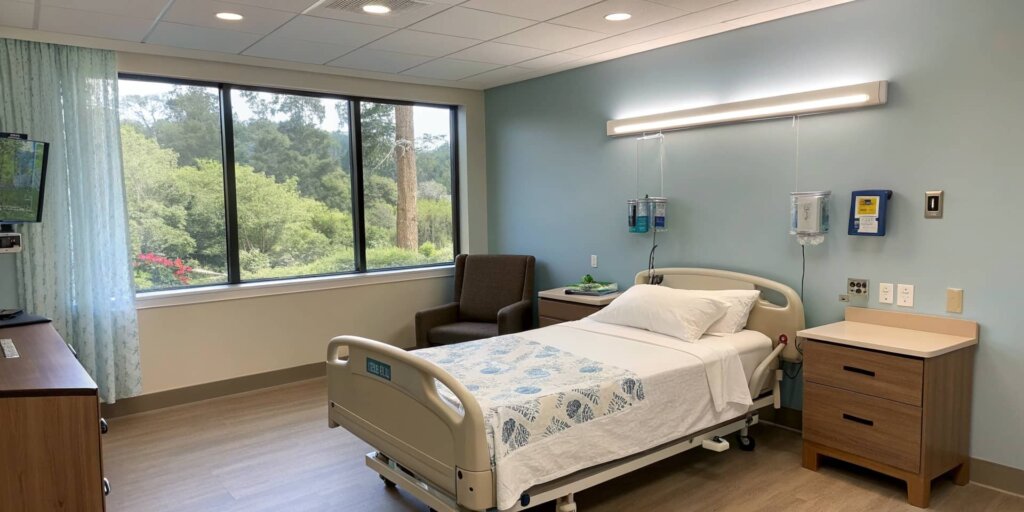 DALI or 0-10V dimming provides human-centric lighting that supports healing—bright light for medical tasks, softer tones for rest and recovery.