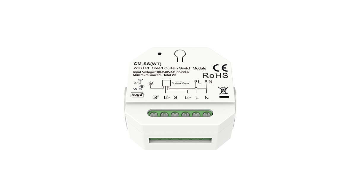100-240VAC 1CH*2A WiFi+RF Smart Curtain Switch Module CM-SS(WT)