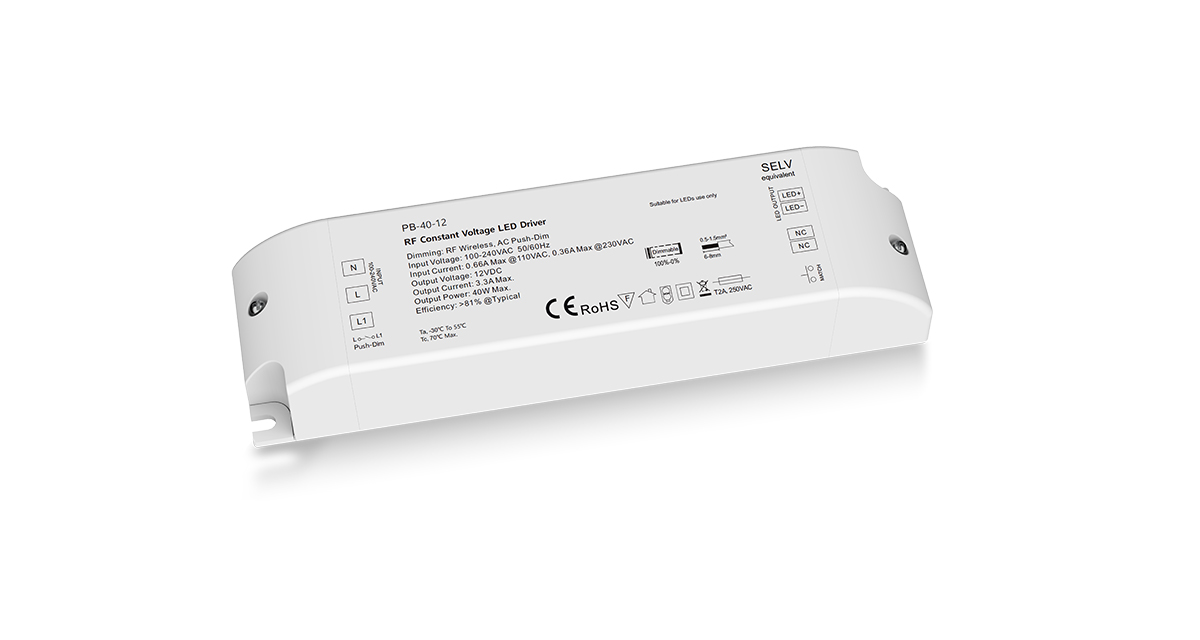 40W 12V RF Dimmable LED Driver, Push-Dim PB-40-12