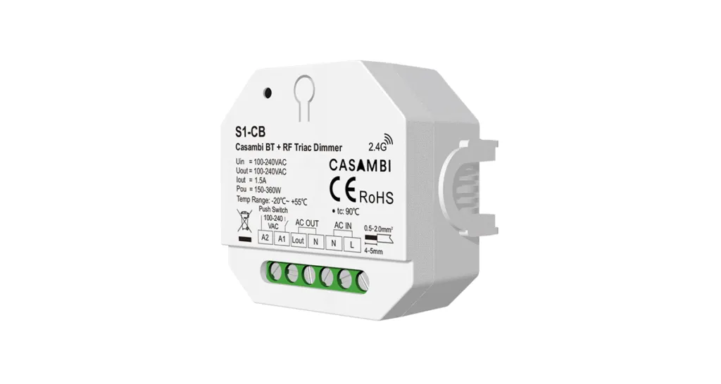 | S1-CB | 100-240VAC 1CH*1.5A Casambi Bluetooth + RF Triac Dimmer | |
