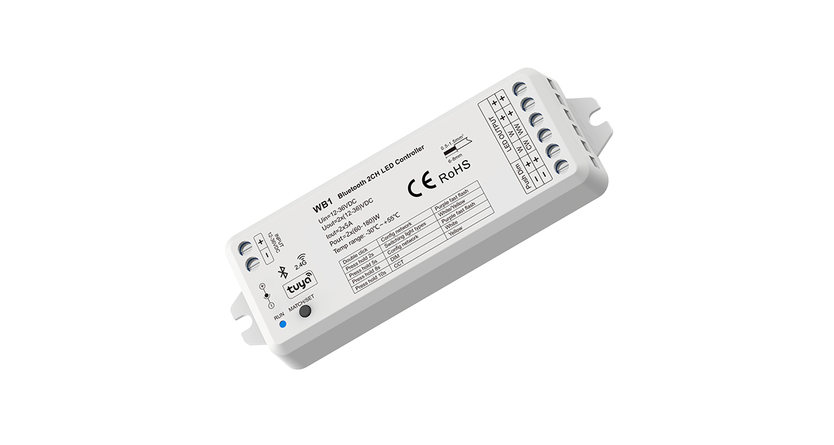 12-36VDC 2CH*5A ブルートゥース&RF LEDコントローラー WB1 (Tuya App)