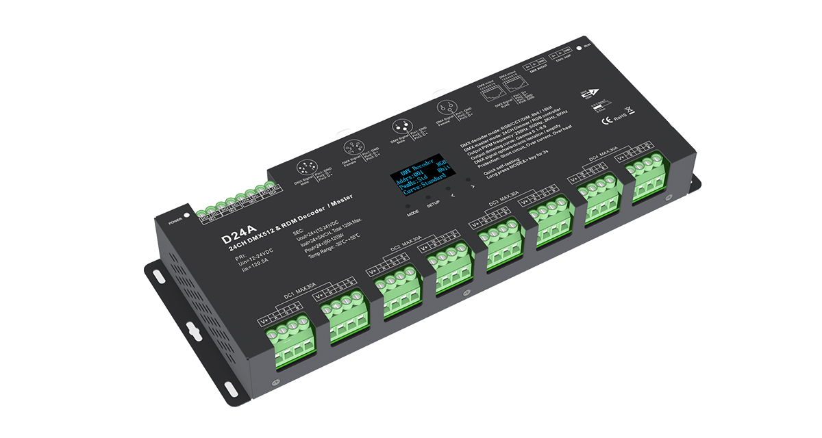 24CH*5A 12-24VDC CV OLED DMX Decoder D24A