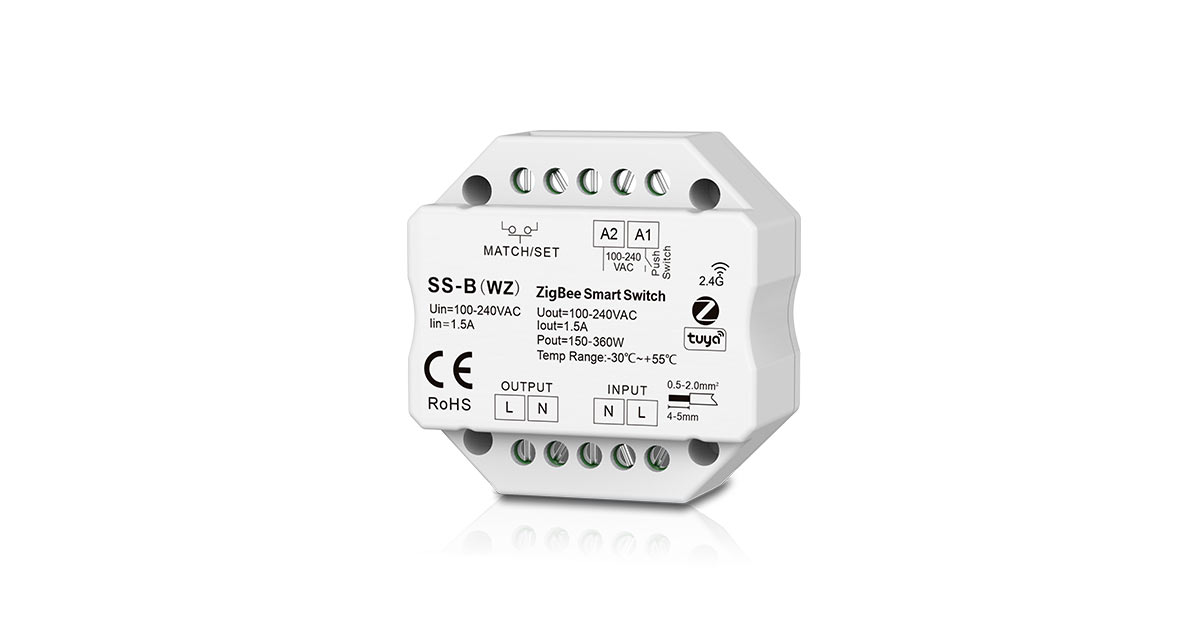 100-240VAC 1CH*1.5A ZigBee & RF Push Switch SS-B(WZ) (Tuya App)