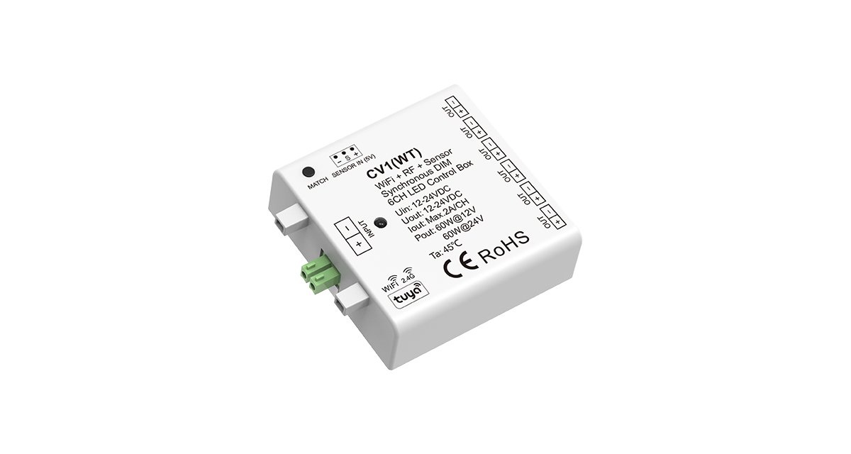 12-24VDC 6CH WiFi&RF&Sensor 同步变暗 LED 控制盒 CV1(WT)